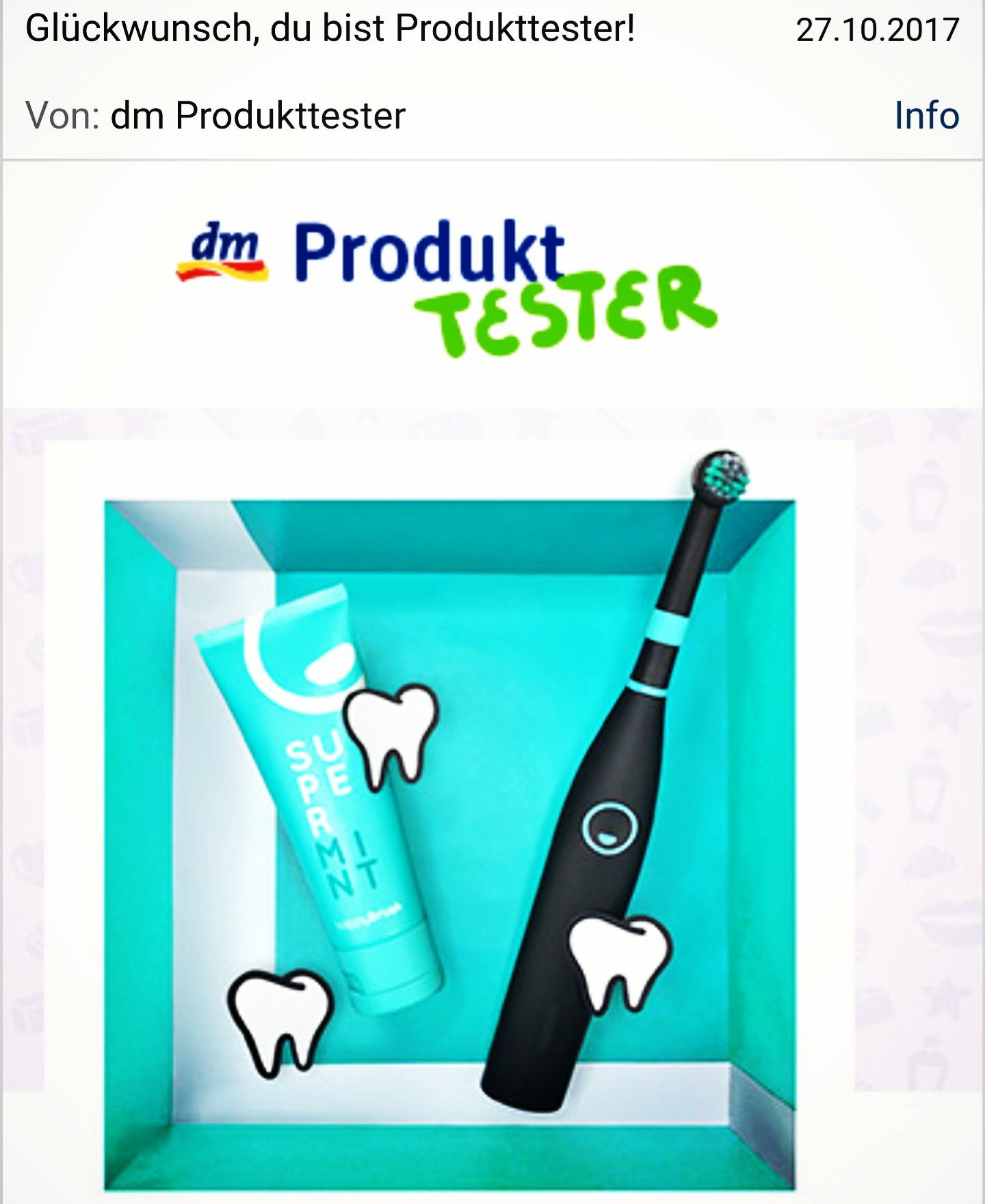 gestern Abend habe ich die tolle Mitteilung erhalten beim DM Produkttest der happybrush Schallzahnbürste dabei sein zu dürfen. Die Zahnbürste ist bekannt aus der letzten Ausstrahlung der Sendung „Die Höhle der Löwen“.