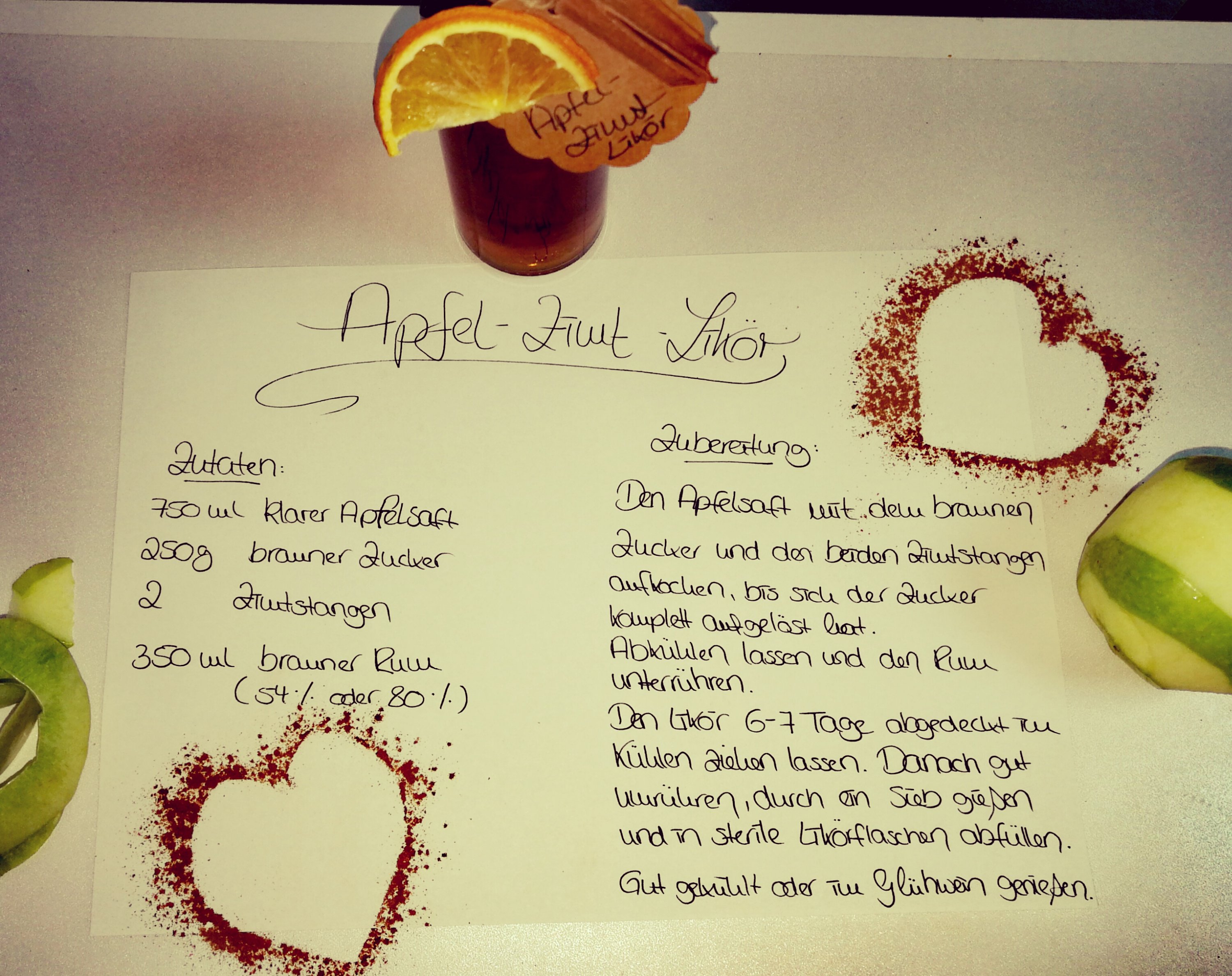 Mit dabei war der selbstgemachte Apfel-Zimt-Likör und ich dachte dem ein oder anderen könnte das Rezept bestimmt gefallen.